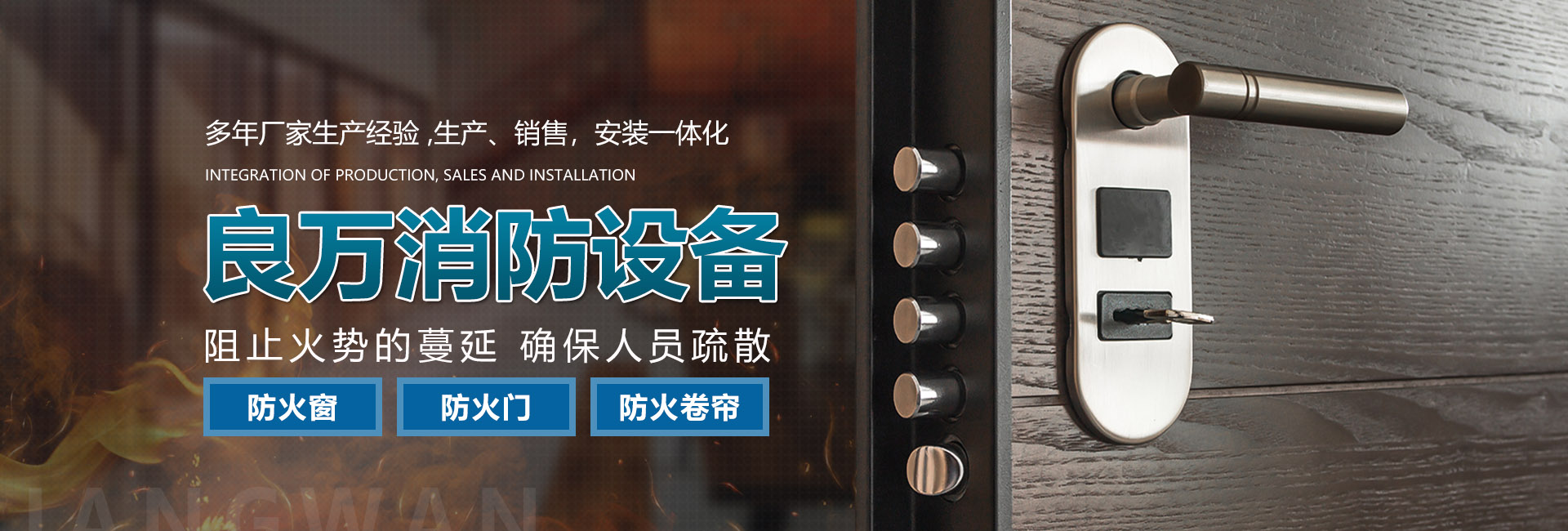 關(guān)于我們合肥良萬消防設(shè)備有限公司位于合肥市包河工業(yè)園,生產(chǎn)銷售安裝:防火門、防火卷簾門、防火窗等消防安全產(chǎn)品。公司具有研發(fā)、設(shè)計、生產(chǎn)、銷售、及安裝服務(wù)的綜合配套能力。合肥良萬消防設(shè)備有限公司技術(shù)力量強,設(shè)備齊全,產(chǎn)品不斷創(chuàng)新,以信譽立業(yè),客戶滿意是我們永無止境的追求。我們在保證產(chǎn)品質(zhì)量的同時,也十分注重售后服務(wù),保證消防安全產(chǎn)品的正常運行。公司始終堅持誠信為本的企業(yè)宗旨,真誠希望與社會各界新老客戶精誠合作,良萬愿與您攜手共創(chuàng)輝煌!